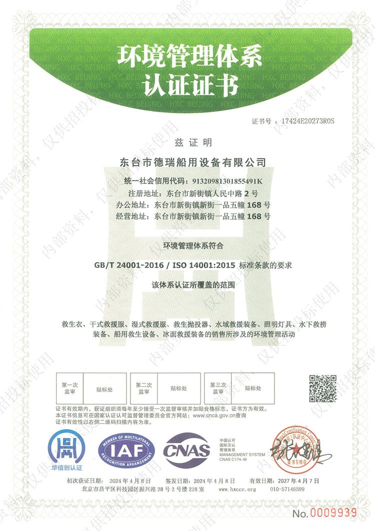 環(huán)境管理體系認(rèn)證證書